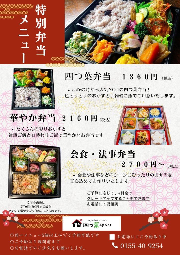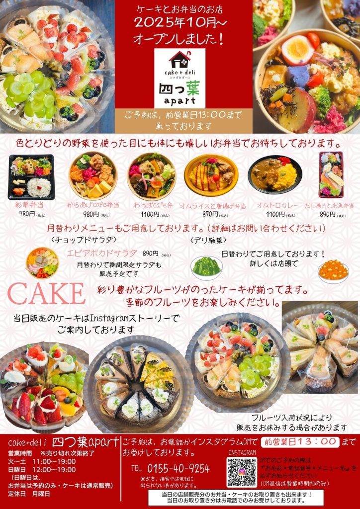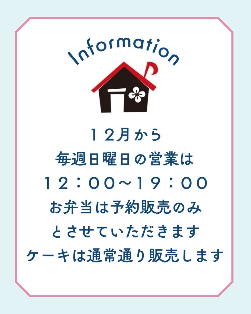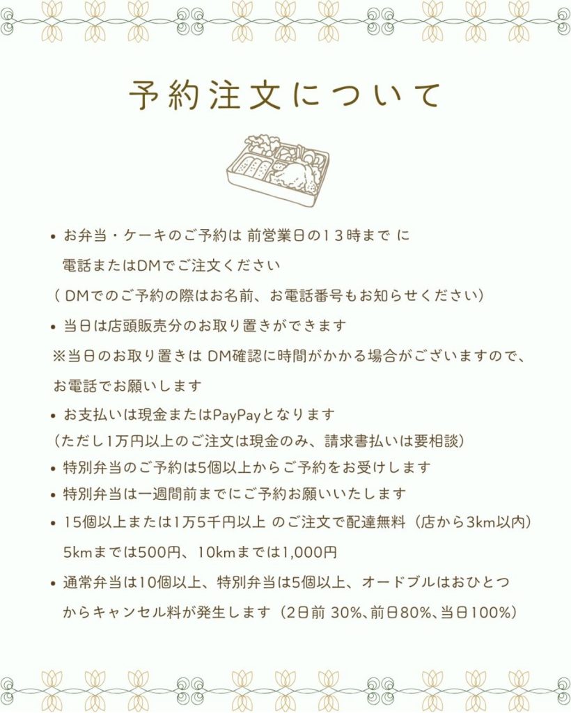また、日曜日のみお弁当はご予約のみの販売となります。ケーキは店舗で通常販売をしております。